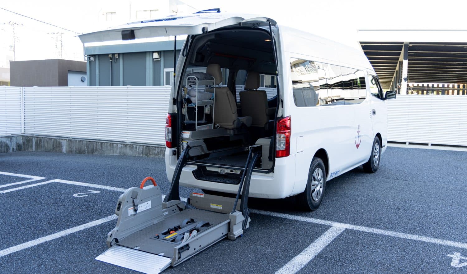 入退院、通院、お出かけ、お買物等車イス、ストレッチャーのまま乗車できます